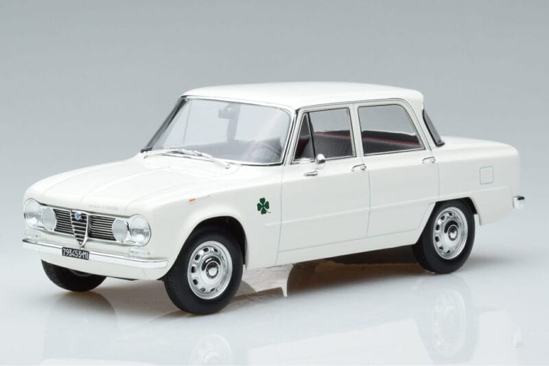 The Alfa Romeo Giulia Ti Super Norev 1:18 is crafted from Metall. Die-cast zinc alloy body with detailed plastic parts, rubber tires, and high-quality paint finish. Die-cast models are known for their weight, durability, and realistic feel.