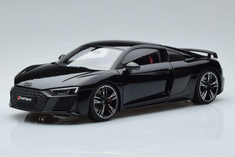 A 1:18 scale model measures approximately 25-28 cm (approximately 10-11 inches). The Audi R8 Performance Schwarz Kengfai 1:18 is perfect for display in a glass cabinet or on a shelf.