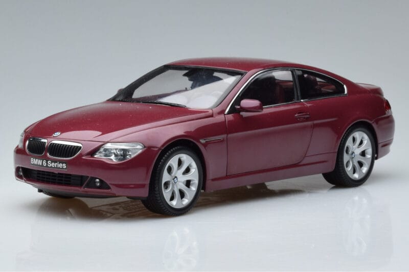 The BMW 645Ci E63 Dunkelrot Kyosho 1:18 is crafted from Metall. Die-cast zinc alloy body with detailed plastic parts, rubber tires, and high-quality paint finish. Die-cast models are known for their weight, durability, and realistic feel.