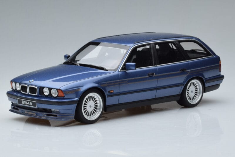 The BMW Alpina B10 E34 4.0 Touring Blau Otto 1:18 is crafted from Resin. High-quality resin with hand-painted details and limited production runs. Resin models offer exceptional detail and are prized by serious collectors for their craftsmanship.