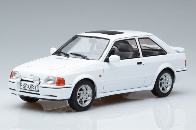 The Ford Escort Mk4 RS Turbo S Weiß MCG 1:18 is crafted from Metall. Die-cast zinc alloy body with detailed plastic parts, rubber tires, and high-quality paint finish. Die-cast models are known for their weight, durability, and realistic feel.
