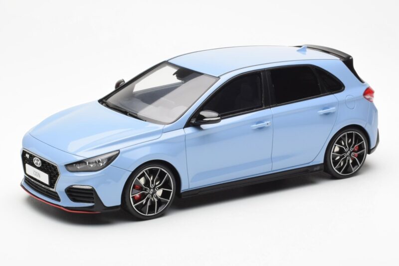 A 1:18 scale model measures approximately 25-28 cm (approximately 10-11 inches). The Hyundai i30 N Hellblau Otto 1:18 is perfect for display in a glass cabinet or on a shelf.