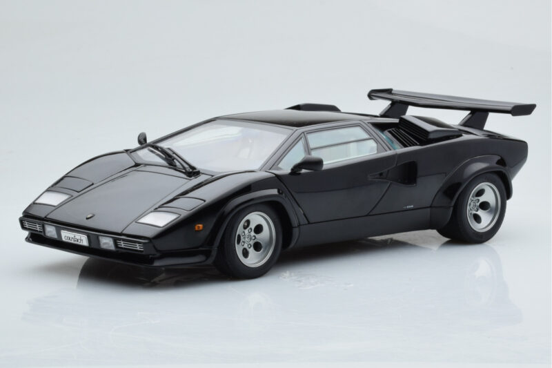 The Lamborghini Countach LP5000S Schwarz AUTOart 1:18 is crafted from Metall. Die-cast zinc alloy body with detailed plastic parts, rubber tires, and high-quality paint finish. Die-cast models are known for their weight, durability, and realistic feel.