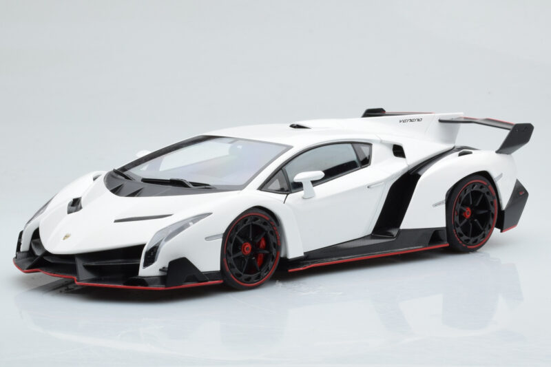 The Lamborghini Veneno Weiß AUTOart 1:18 is crafted from Metall. Die-cast zinc alloy body with detailed plastic parts, rubber tires, and high-quality paint finish. Die-cast models are known for their weight, durability, and realistic feel.