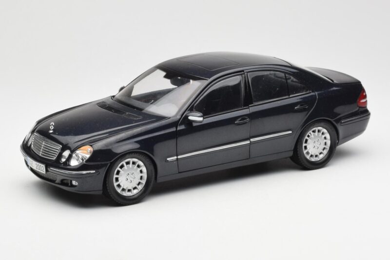 The Mercedes E-Class W211 Blau Metallic Kyosho 1:18 is crafted from Metall. Die-cast zinc alloy body with detailed plastic parts, rubber tires, and high-quality paint finish. Die-cast models are known for their weight, durability, and realistic feel.
