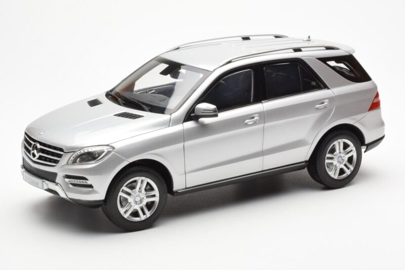 The Mercedes M-Class W166 Iridium Silber Metallic Minichamps 1:18 is crafted from Metall. Die-cast zinc alloy body with detailed plastic parts, rubber tires, and high-quality paint finish. Die-cast models are known for their weight, durability, and realistic feel.