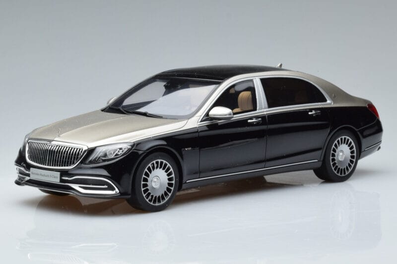 A 1:18 scale model measures approximately 25-28 cm (approximately 10-11 inches). The Mercedes Maybach S600 W222 Schwarz Silber GT Spirit 1:18 is perfect for display in a glass cabinet or on a shelf.