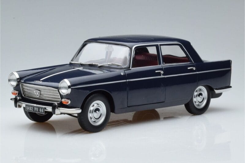 A 1:18 scale model measures approximately 25-28 cm (approximately 10-11 inches). The Peugeot 404 Blau Norev 1:18 is perfect for display in a glass cabinet or on a shelf.