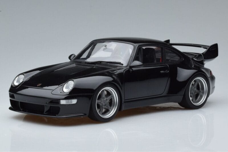 The Porsche 911 993 Gunther Werks 400R Schwarz GT Spirit 1:18 is crafted from Resin. High-quality resin with hand-painted details and limited production runs. Resin models offer exceptional detail and are prized by serious collectors for their craftsmanship.