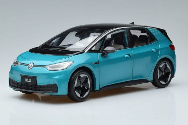 The Volkswagen ID.3 Grün FAW 1:18 is crafted from Metall. Die-cast zinc alloy body with detailed plastic parts, rubber tires, and high-quality paint finish. Die-cast models are known for their weight, durability, and realistic feel.